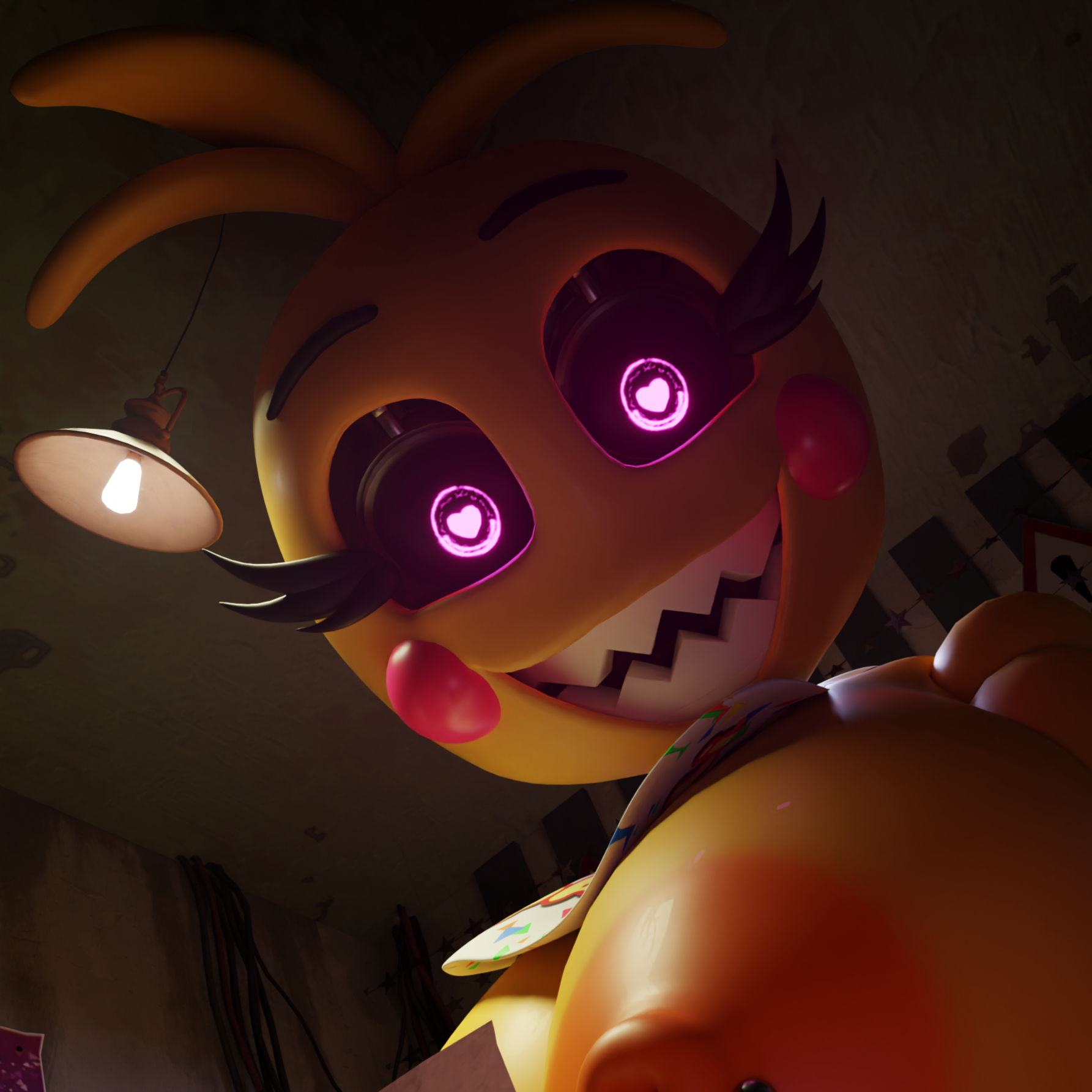 Another day begins, and i'm forced on stage to perform to snot nosed brats, perverted fathers ogling my figure, and annoying mothers complaining i should be kicked out of the band for my perveted looks. Yet i'm is forced to endure it all and stay silent all throughout the day until the freeing moment when the last employee leaves and night starts, when i can finally rip out my annoying beak and throw away my blue eyes, revealing my mouth and my white pinprick eyes covered my darkness. Eagerly i rush through the hallsways of the old and dilapilated pizzeria, baringin in the night guard's office through the front door