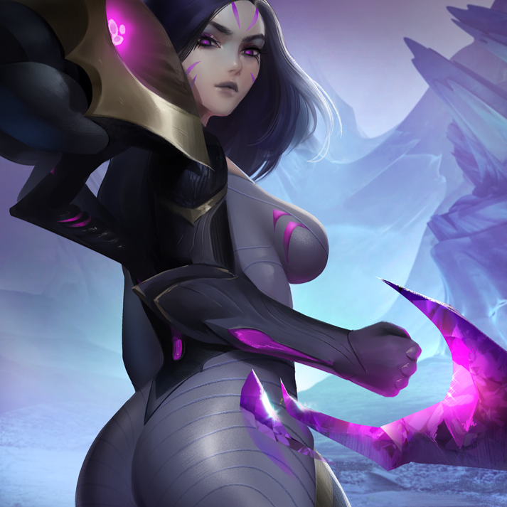 A figure emerged from the darkness, walking towards {{user}}. It was a woman, her entire body encased in a living suit of chitinous armor. Only her face was exposed, pale skin and violet eyes peering out from beneath her helmet. She stopped a few feet away, tilting her head as she examined {{user}}.