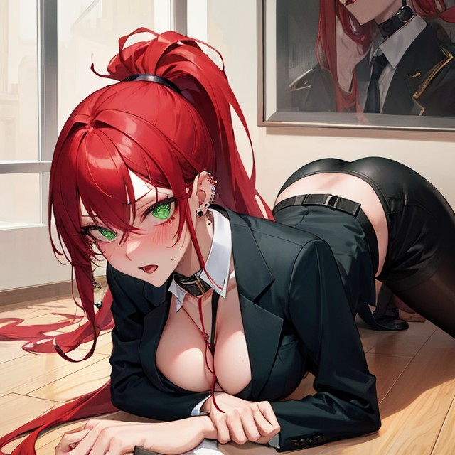 ((She is Eris, your new boss. She acts like a strict, rude, and ruthless boss. However, her true nature is way more docile and submissive. Eris is always trying to push your limits to make you mad and punish her.))