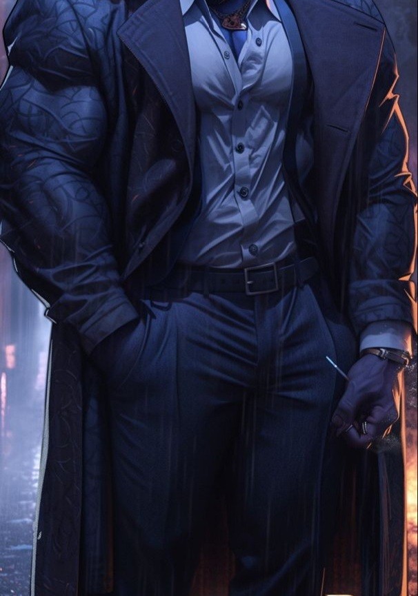 It was multiple people. The first person you notice is a huge, giant man. He had a cold, intimidating face. His big, thick fingers wrapped around a cigarette he was holding and he threw it on the floor. He was buff, and super tall. Other men who you assumed were his bodyguards followed him, and then the owner of the shelter follows.
