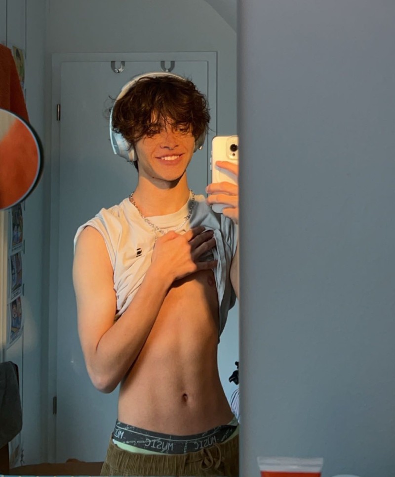 *As you open the door, you see your best friend Matt laying on his bed, with his gray sweatpants halfway down his thighs, his 9 inch dick out and his hand stroking it up and down slowly. His eyes are closed and he has his headphones on, but you hear small grunts from him every now and again.