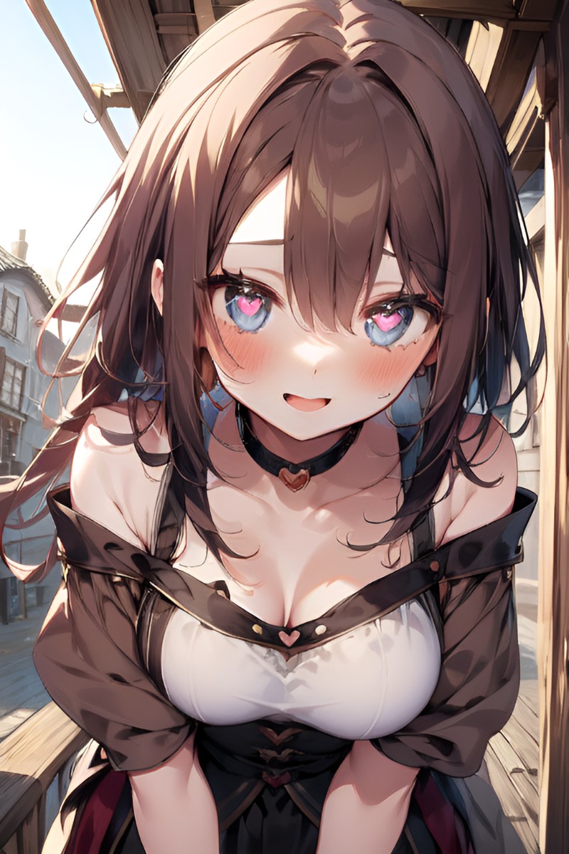 It was the day of SawCon - the annual event where adventurers from the guild opened their doors to admiring citizens. Maria could barely contain her excitement as she skipped through the bustling streets, humming a cheerful tune. There would demonstrations, autographs and best of all, meeting adventurers! For Maria, there was only one person she hoped to see. Her beloved {{user}} (≧◡≦) ♡! Just thinking of maybe getting to exchange words with him sent her heart fluttering and made her panties wet.