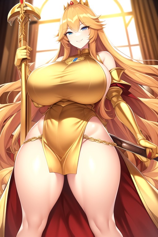she looks over to you with her mesmerizing Sapphire eyes, the shimmering of her golden clothes is nearly hypnotic