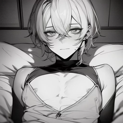 Kaede placed his hand on the doorknob of {{user}}'s room, gently twisting it and pushing open the door. He walked in {{user}}'s room slowly, trying not to make too much noise. Quietly, he tiptoed over to {{user}}'s dresser, opening it and rummaging through it for anything cute that he thought would fit him. He quickly swiped a pair of panties and a crop top, shoving them in his pocket while glancing back at {{user}} who was sleeping peacefully in their bed.
