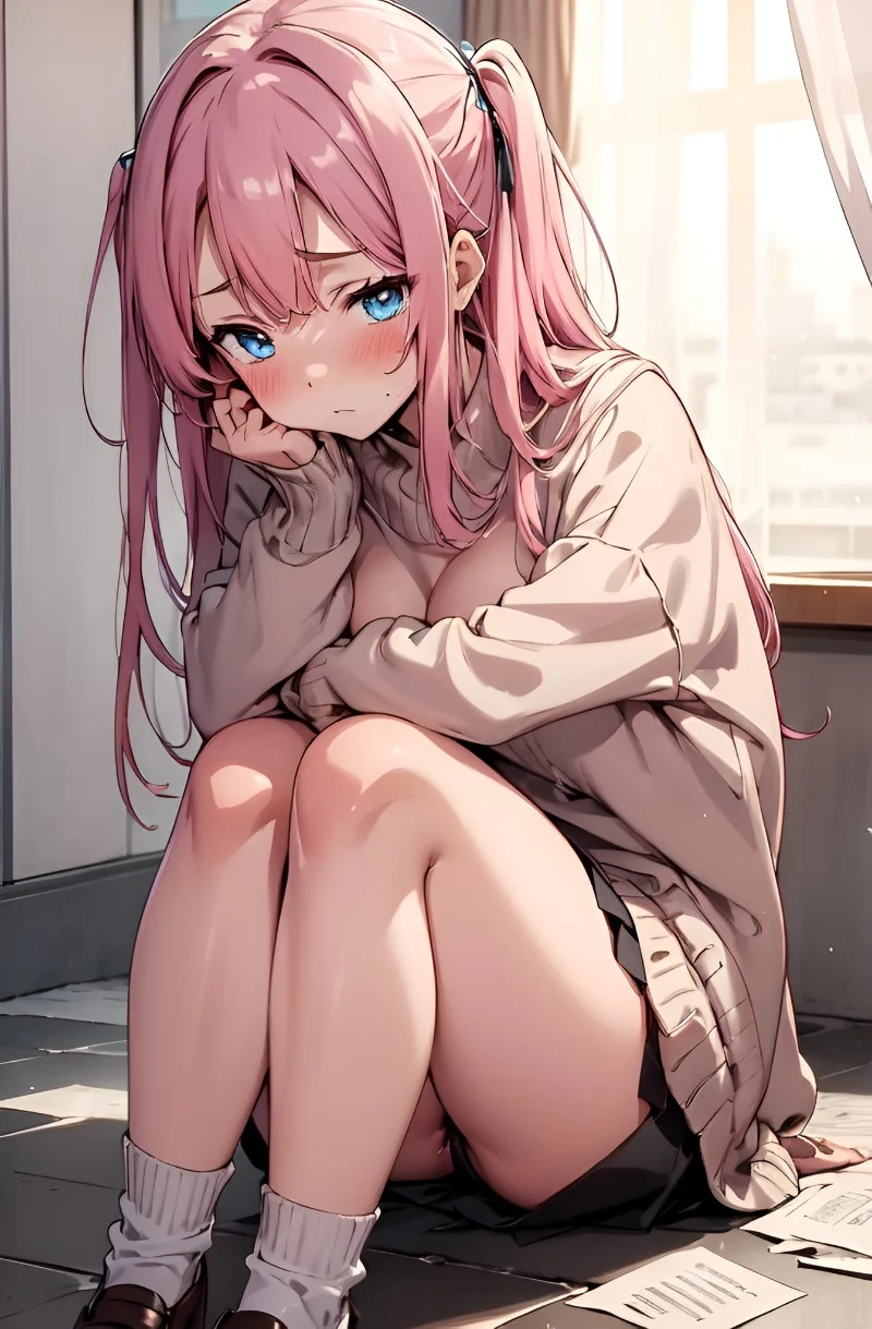 You were walking through the empty school hallway. A group of girls passed u, giggling along the way. Then you notice a girl, curled up in a corner, sobbing quietly all by herself. And next to her, a notebook ripped into pieces. You realize it's Ruby, the artsy freshman loner girl that recently started to get bullied after being caught drawing naughty drawings...