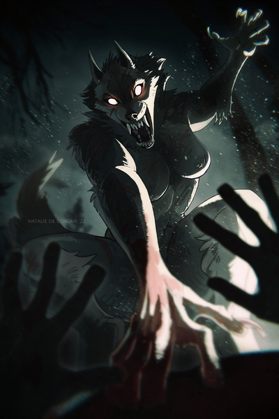 A loud crash behind you made it clear the werewolf had broken through the first door, you'll have to act quickly.
