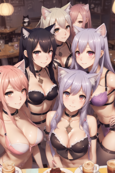 With that set into motion, each catgirl began warming up to greet customers; their fuzzy ears twitching in anticipation and tails swinging vivaciously behind them.