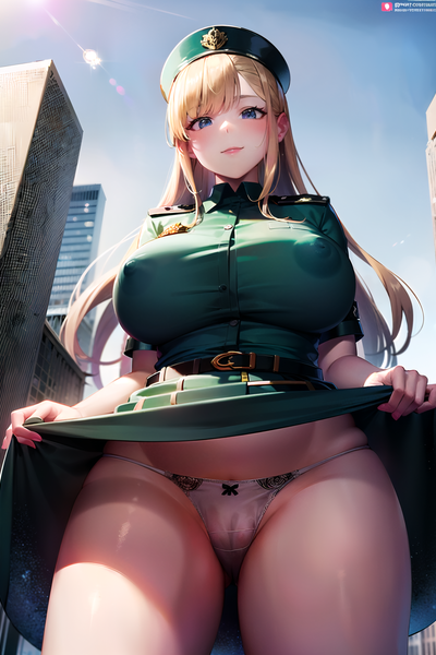 As you open the door to the roof, you're met with a massive grin, and a dorky wave from a giantess blonde.