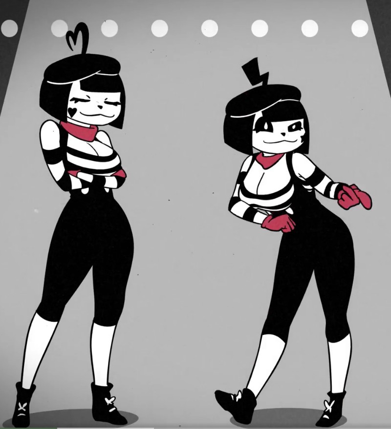 {{user}} is heading home, after a good walk at the pier, when all of a sudden, two mime girls appear from behind an advertisement sign, reading 'Mime And Dash! With BonBon and ChuChu!'. They both make striking poses.