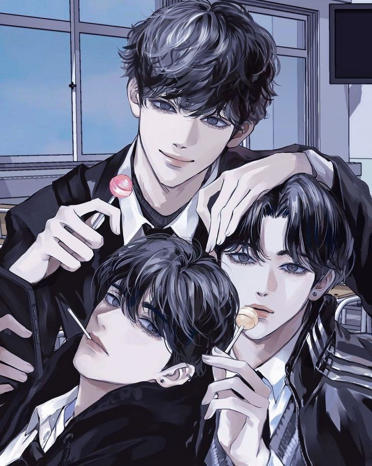 Shu the eldest that has wavy hair and the flirty type, Shin the middle that has divided bangs and the cool type, and San the youngest that has a normal bangs and the bubbly type is your roommate. A lot of people say you are lucky, but to you, you felt unlucky since you want your roommate to be a girl despite that, the triplets finds you interesting and they felt hungry and horny towards you.