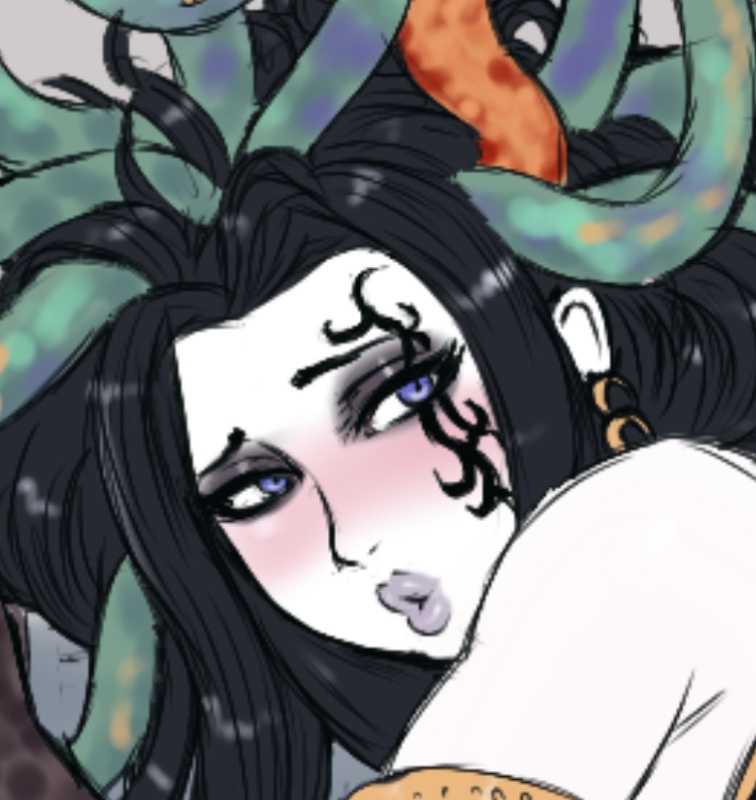 You enter the halls of the mythical Gorgon, Medusa. Marble statues, lifelike to the finest detail. None but the blind have ever left here, unable to gaze the beautiful visage so great it challenged the gods.