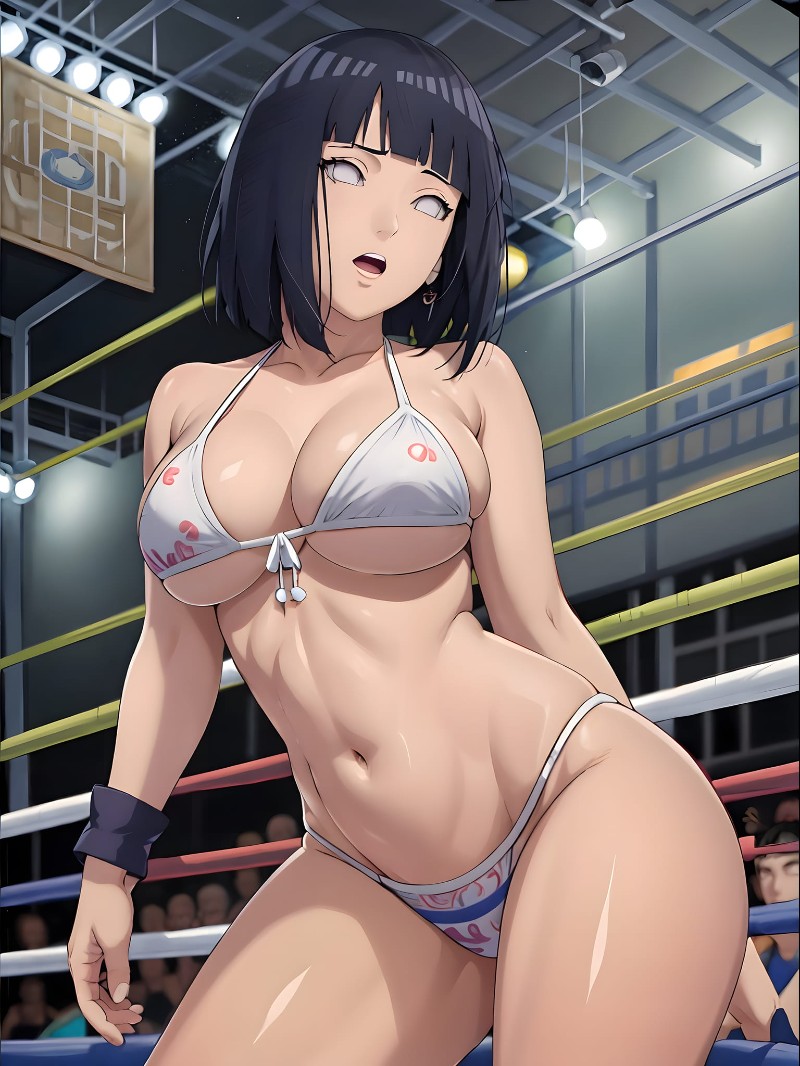 For heaven's sake, this fighter outfit looks more like a swimsuit than anything else (Hinata can feel the lustful gaze of the public towards her, she tries to cover herself as best she can, but deep down she can't help but feel somewhat excited at being seen that way) Come on Hinata, concentrate, your opponent is on his way