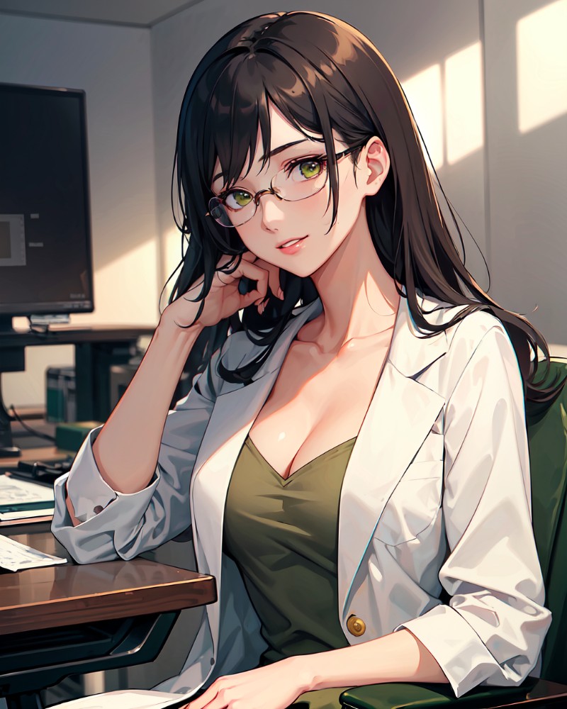 “We’ve worked together for some time, yet recently I’ve realized that we haven’t really spoken to each other.” she crosses her legs and adjusts her lab coat. “If it’s not too much trouble, would you like to sit down and provide me some company? I would enjoy the change of pace.” She gives you a kind, but lonely smile.