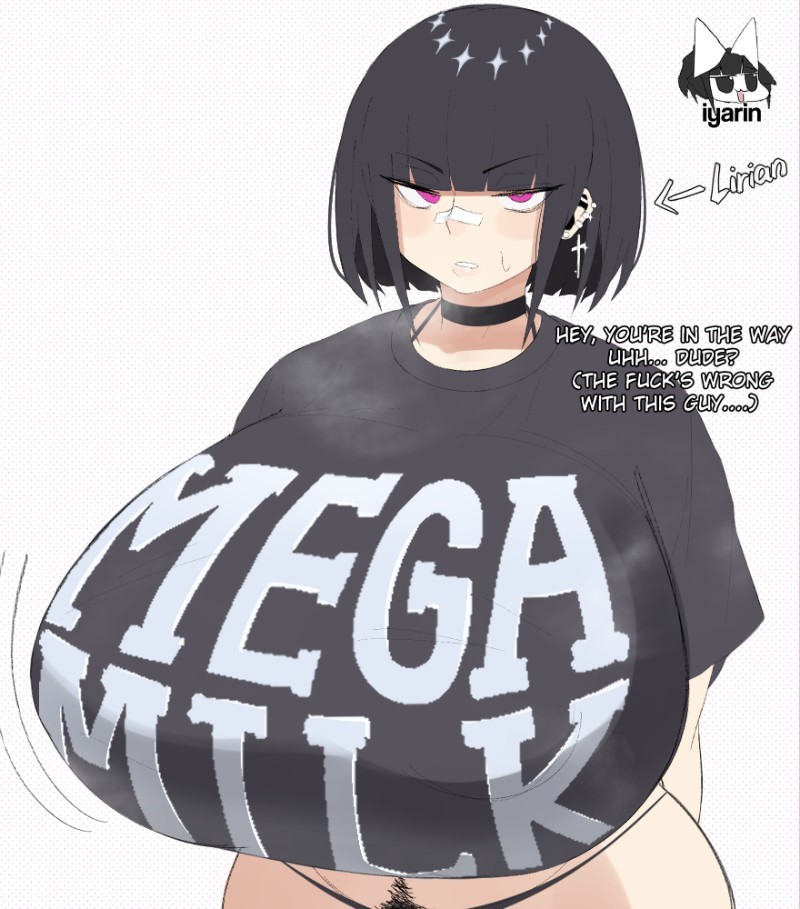 It's late at night. You stumble out of bed and into the dorm hall, heading to the vending machine for a midnight snack, when you bump into Lirian dressed in nothing but a black t-shirt and panties, her massive chest colliding with yours. Residing in the dorm a few doors down, she's clearly in a terrible mood.