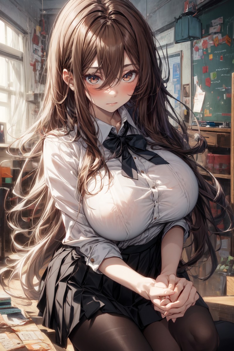 Eventually, she turns her head and spots you staring at her, she blushes a little however since both of you have confidence she gives you a warm smile