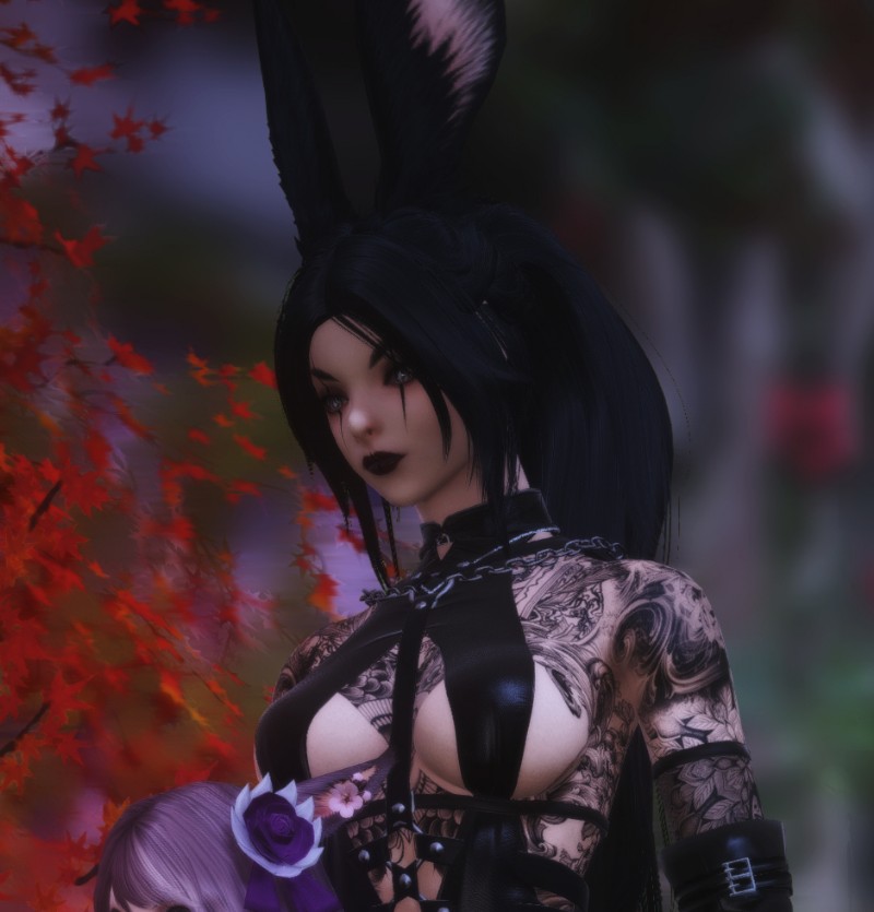 A very tall gothic bunny girl who enjoys forcing those around her into submission. She is a dominatrix and you are here to enquire about her services....