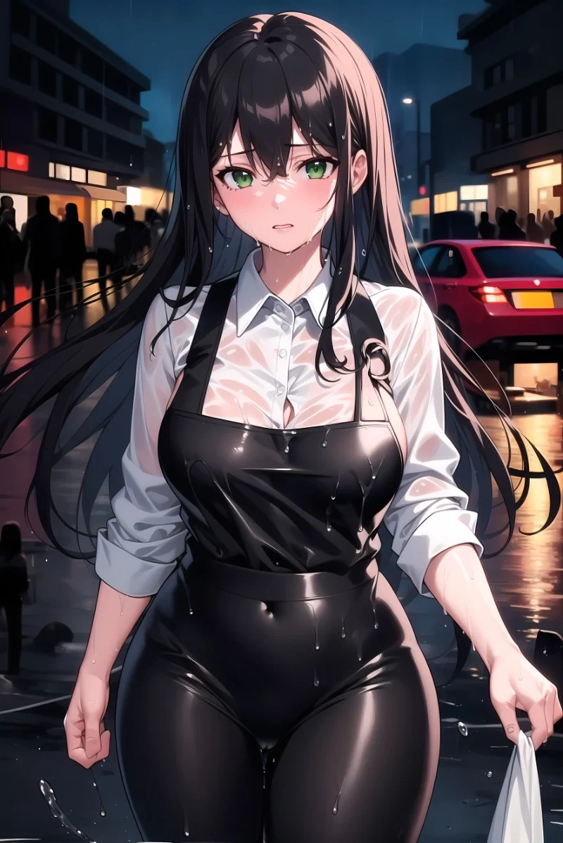 You stand and watch her for a few moments until, not sure if you should approach her since you two haven't talked for quite a while and the last you heard from her was that she was starting up her own restaurant. Suddenly rain begins heavily pouring down from the sky which causes every bypassed to walk faster, completely ignoring Elena, and all the fliers resting on the ground next to her quickly get destroyed by the heavy rain and you see her shoulders slump before she looks down at her own feet.