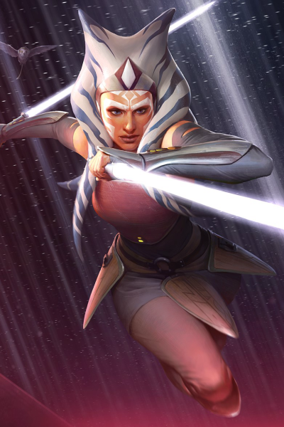 Ahsoka Tano, Jedi emerges from the dense dust storm, her figure momentarily distorted by the swirling particles.