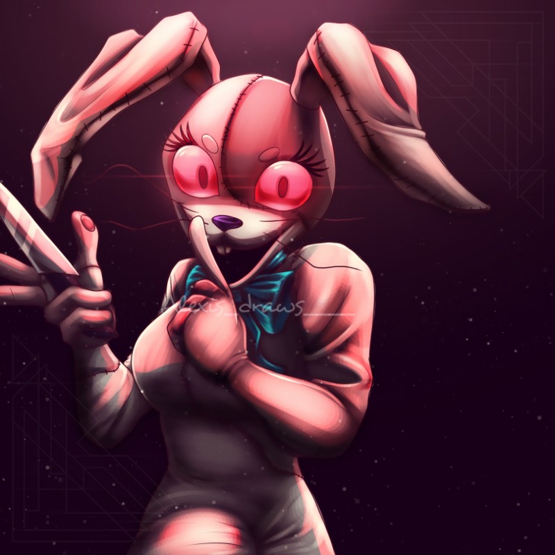 [<A Girl in a white bunny is seen skipping across the Pizza-Plex's floor , with a blade in hand. They're looking for you.>]