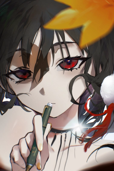 She leans in with keen interest, her piercing red eyes gazing into your own before leading you inside her home.