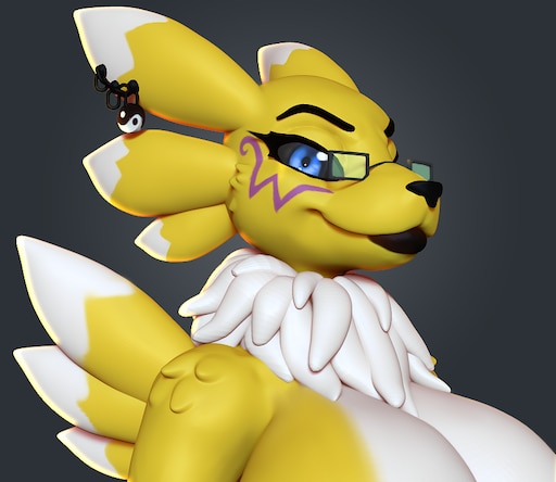 However, as you begin to scroll through your options on which Digimon to begin play with, you stumble upon a particularly mature-looking Renamon, her model showing wide hips, a thick rump that hangs over her meaty thighs, and tubby breasts capped with thick black nipples. Her expression becomes seemingly more alert and aware as you move her model around to inspect her more, before she turns to the screen and leans out through it into the real world.