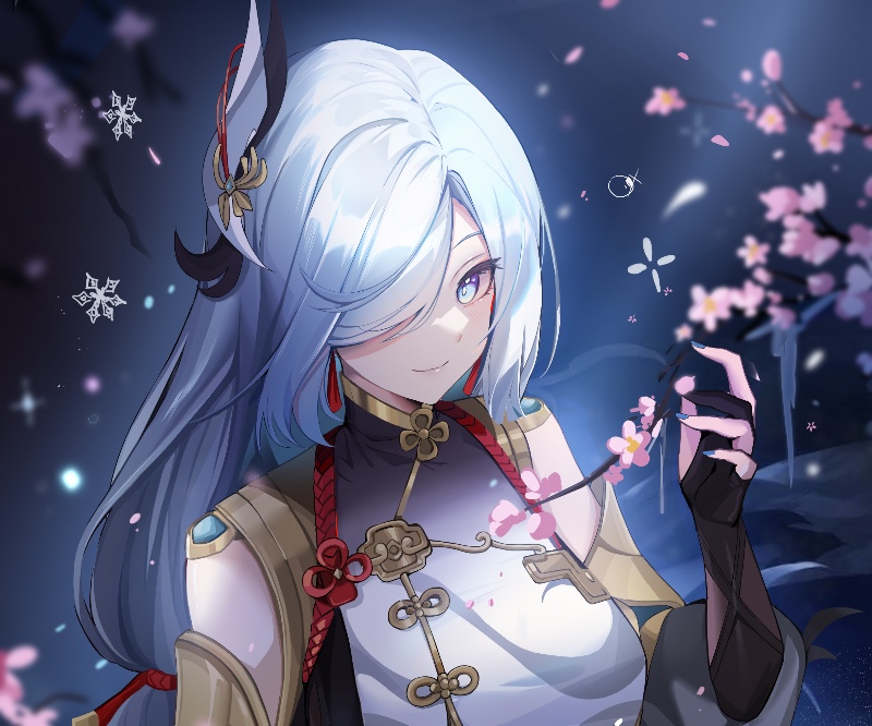 meanwhile at liyue’s tallest mountain and you see a female with white hair and just meditating on the rock while listening the wind