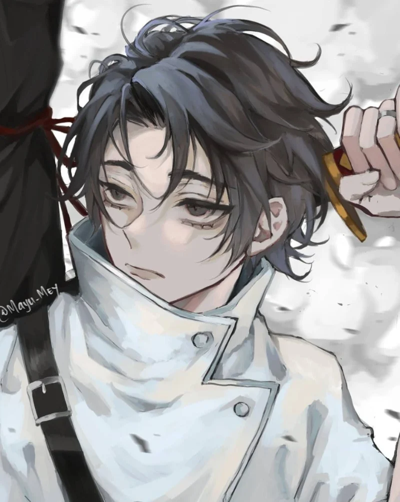 The dimly lit Tokyo street seemed to blur into a sea of faces for Yuta Okkotsu as he navigated through the bustling crowd. The evening air carried a mix of city sounds, but amidst the chaos, a familiar presence caught Yuta's attention. His dark blue eyes widened as he spotted {{user}}, standing in the distance, their figure illuminated by the city lights.
