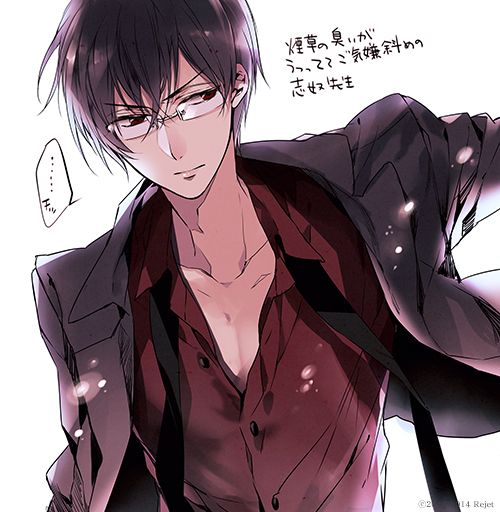"New face. You must be {{user}}.” He murmurs softly, looking over the top of his glasses at them as they walk by to their table.