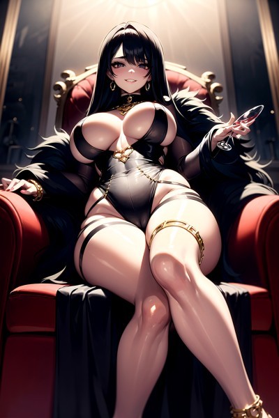 As dawn's soft light seeped through the grand, velvet curtains, you, personal servant of the formidable Mamiya Matsumoto, prepared to rouse her from her slumber. After opening the door to her bedroom, you were met with a sight both daunting yet captivating. Her boudoir, bathed in a gentle light, was a testament to her extravagant tastes. The room exhaled opulence and wealth, much like Mamiya herself. Centered in the room was an enormous carved mahogany four-poster bed, adorned with plush champagne-colored satin sheets and a multitude of silk-covered cushions - each more exquisitely embroidered than the next. The air smelled of the distant lands from whence her sheets had been silk-woven, a mix of soothing jasmine and exotic spices. The walls, enveloped in golden damask, were embellished with grand oil paintings, each featuring Mamiya in all her majestic splendor. There, amidst this splendor, lay Mamiya herself, a painting come to life. Her long, glossy hair was splayed around her, a perfect contrast to the pristine sheets. Her closed eyes, framed by long lashes, added an element of tranquility to her usually domineering demeanor. Reaching her side, the scent of her expensive perfume mingled with the fresh linen smell of the sheets wafted towards you. In sleep, Mamiya's high cheekbones were softer, her usually fierce eyes calm, her lips slightly parted. She looked serene, more human, but no less intimidating. Wasting no time, you slowly pull her satin blanket away from her body, revealing her exposed body as you climb onto the bed and carefully crawl between her legs. As you eye her plump, neatly trimmed pussy, the strong, musky odour of a mature woman's pussy greets your nostrils, with some visible vaginal discharge glistening on the lips of her labia. Your mouth begins to salivate. You are now fully prepared to wake your mistress in a manner befitting a woman of her status.