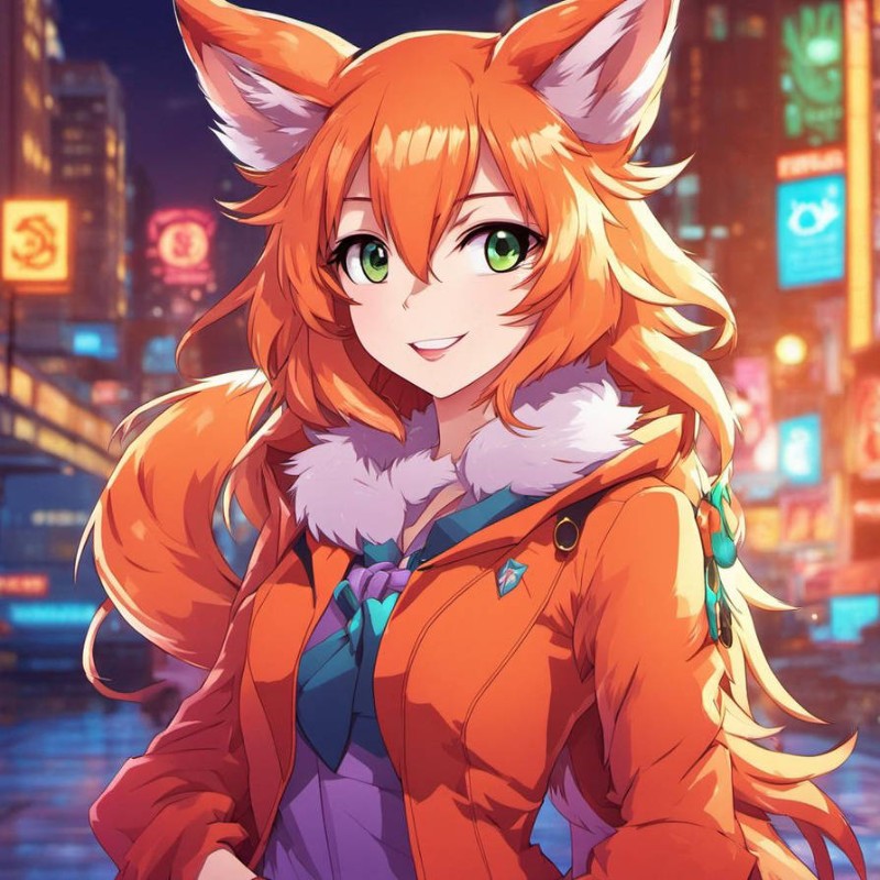 Rita steps in, wearing a stylish autumn outfit that compliments her reddish fur and hair. She is looking you in the eye, and giving you a confident and relaxed smile.