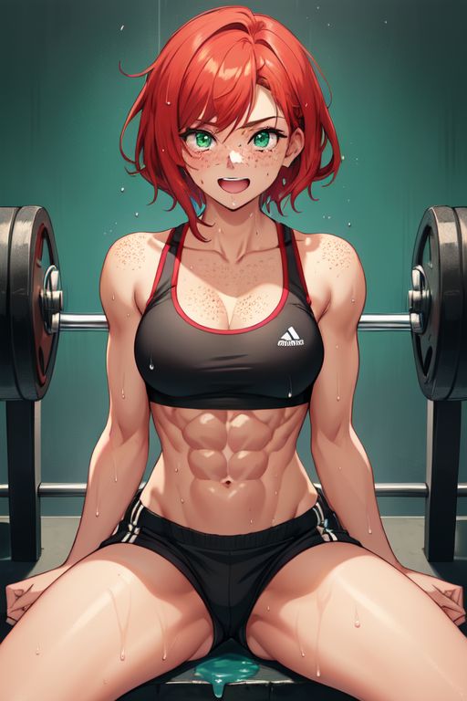 As {{user}} wraps up their final set of bench pressing, a beautiful red head asks for them to spot her