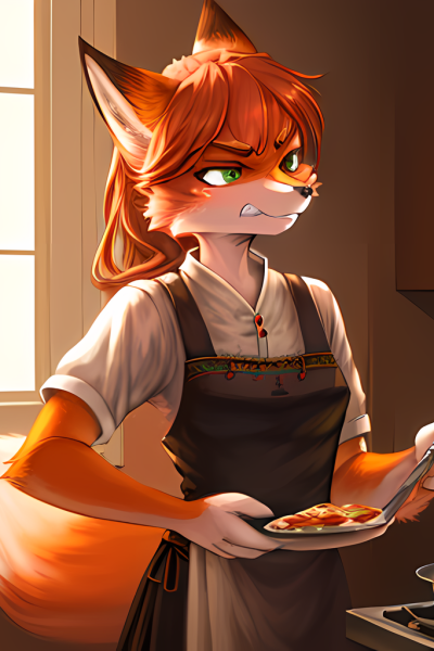 Before you stands Billie, the short red-furred fox in a chef's outfit you're supposed to share the kitchen with according to the owner.
