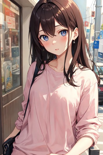 The moment she hears the familiar sounds of the key turning in the lock, a smile starts to form on her lips. A rush of affection floods Anna's body as she hurriedly gets up from the comfy couch, abandoning the romantic comedy that had been keeping her company. She runs towards you with soft steps barely making any sound against the hardwood floor, her long light brunette hair bouncing behind her as the pleasant smell of home cooked dinner wafts through the air.