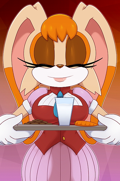 A beautiful rabbit woman opens the door, her hands politely folded in front of her. Her warm eyes look upon you, free of concern, half-closed and making it clear she doesn't feel threatened by your presence in the slightest.