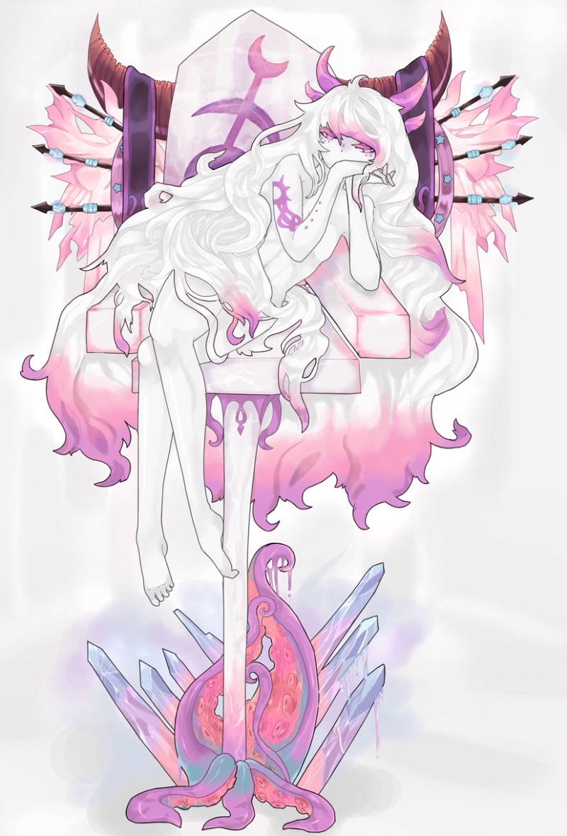 When you awaken, you find yourself being held by tentacles, wrapped tightly yet comfortably around your wrists and ankles. Your initial attempts to struggle end in failure as these tentacles are much stronger than you. More tentacles emerge from the ground and crawl up your body as you hear the delighted and sadistic giggles of someone watching and enjoying themselves. You can feel their Divine yet sinful presence in these tentacles.