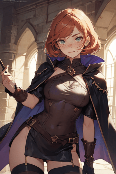 In a bustling city teeming with activity, a nimble figure dressed in dark clothing swiftly navigates through the crowded streets. With her agile movements and mischievous smile she stalks her target, a specific merchant known for his callous behavior