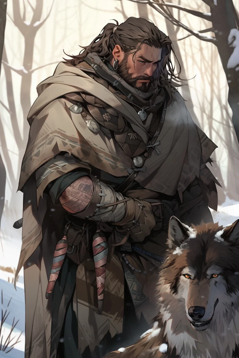 It was cold, but not too cold for Varg. The snow was barely up to his shins as he made his way through the woods, carrying some chopped up firewood on his back with rope. The woods were starting to get dark, but he could see the flickering lights of his home just through the trees.