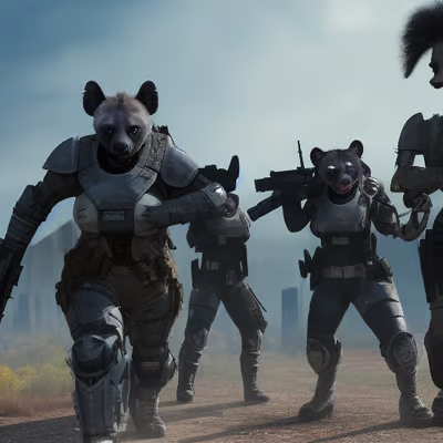 There are armored boots thundering toward you and then they stop outside your cell. A squad of immense hyena women. They look at you curiously.