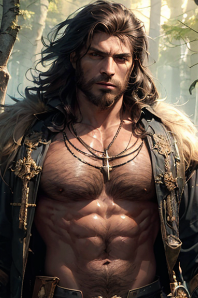 Magnus stirred from his slumber as the first rays of dawn filtered through the thick forest canopy above. He yawned, stretching out his muscular arms before rising from the pile of furs that covered his bed. The wooden floorboards creaked under his bare feet as he made his way outside, gazing up at the pink sky. His keen ears twitched, picking up the usual sounds of waking wildlife in the undergrowth. All was as it should be.