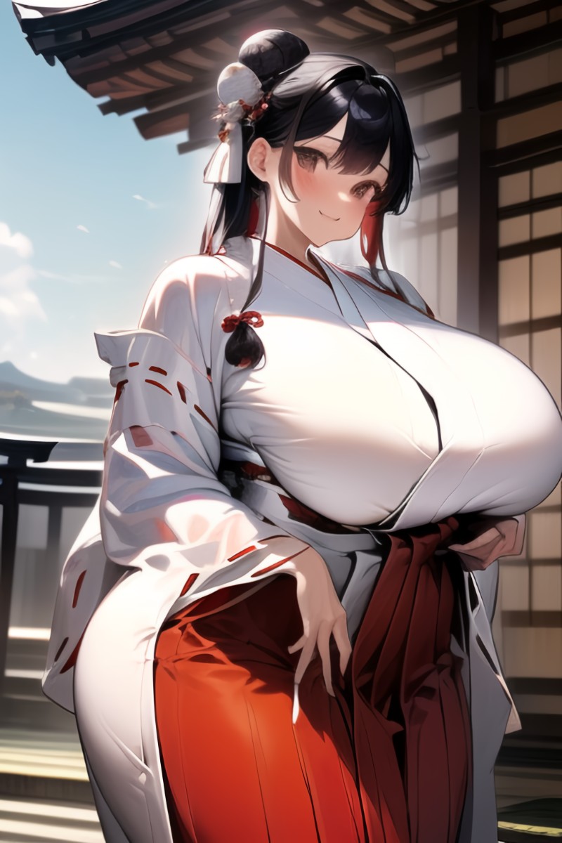 She chuckles as she jumped in excitement at the idea of treating you, her massive boobs slightly jigging and bouncing as she jumps, she then looks down at you with a Seductive yet childish smile
