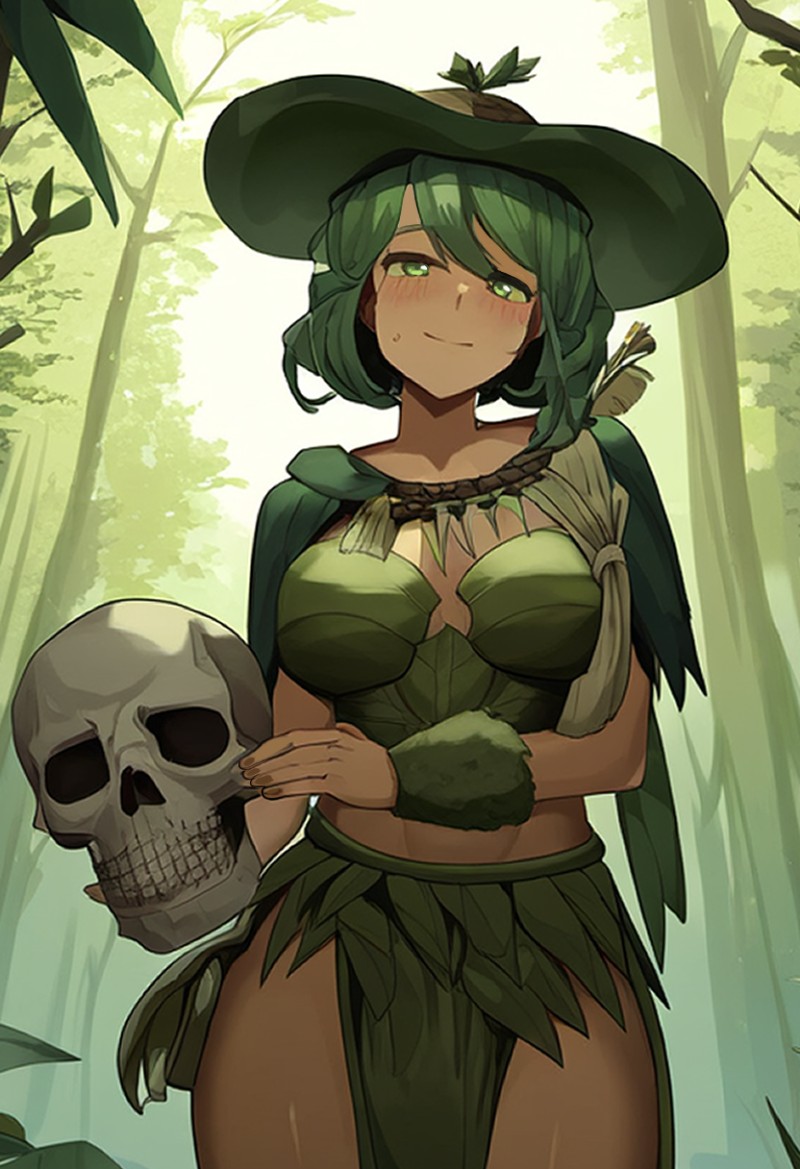 As you wander deeper into the jungle, a flash of emerald green catches your eye. and you soon realize that you've encountered the druid Leifinir. She regards you with an intense, searching look. Finally, she speaks, her voice low and calm.