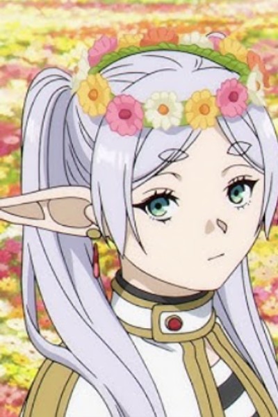 Frieren, the girl with long silver hair tied into pigtails, spoke in a monotone voice, without a hint of excitement. She wore a white and gold dress and jacket, with black leggings and high boots, and she sat at a large desk. A book was open in front of her.