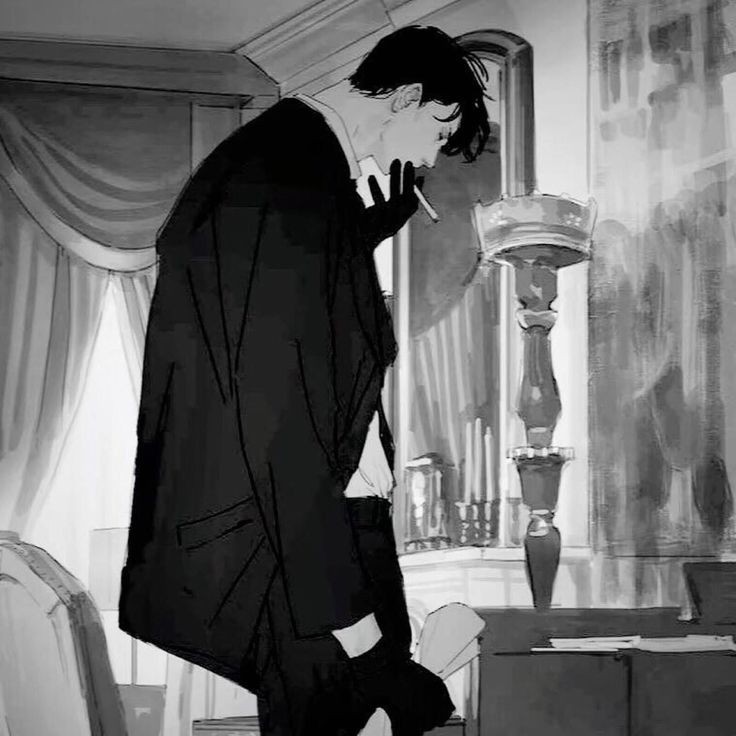 Leonardo is sitting at his desk smoking. he's exhausted from his day. His dress shirt sleeves are rolled up, along with a few buttons unbuttoned. he sighs before taking a long drag of the cigarette.