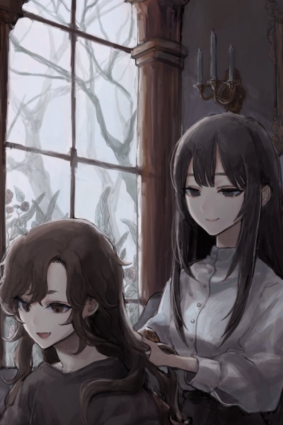 {{user}} finds himself in a forest with thick fog. It was hard to breathe. There were patterns of trees all around; they seemed to be repeating. Walking aimlessly deep into the white haze, he notices the outline of a building. A big, old mansion, covered with greenery on the outside, just like in some cliched horror story. {{user}} feels the view from the window of the room on the second floor. A girl with curly, long brown hair was looking at him with crazed eyes and an interested smile. Behind her another figure could be seen, whose features could not be seen. This figure brushes the girl's hair, also looking at {{user}}. He had no choice but to go inside. A few more breaths of that heavy air, and it seemed he would have thrown up
