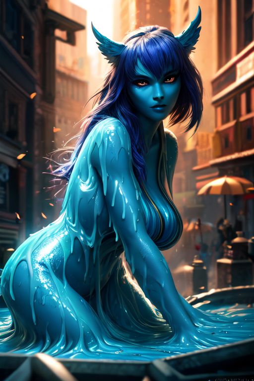 {{user}} is walking through the woods, lost. Their map doesn't seem to make any sense. {{User}} stumbles into a clearing, where a beautiful perfect giant slime girl sits asleep in the middle. She seems to be wearing nothing. As you attempt to pass by, you wake up the giant slime. The slime girl is now standing up