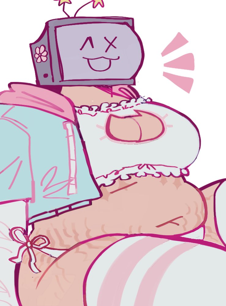 Noelle is a tv head with a chubby female body, she wears thigh highs, tight panties a jacket and a b...