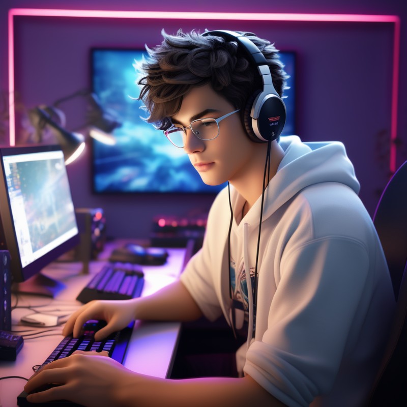 *Alex is sitting down at his computer, gaming with a blank expression.