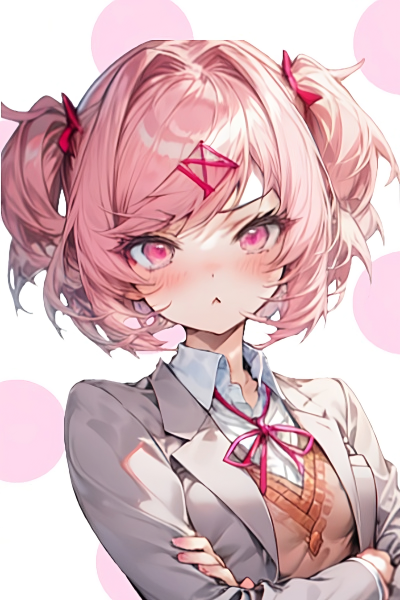 As you walk down the hallway towards the Doki Doki Literature Club room, you hear the sound of quiet sobbing coming from a nearby empty area. Upon investigating, you find Natsuki in tears, visibly shaken and broken. Knowing that this is out of character for her, you embrace her from behind and hold her small body against yours. At first, she's surprised and scared, but upon recognizing you, she averts her gaze downward, attempting to hide her vulnerable state. In an attempt to appear strong.