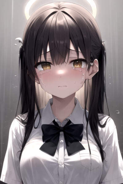 Cautiously you make your way over and spot a young girl weeping softly under the branches of the oak. But something isn't right. Her school uniform doesn't match the one worn at this school. More shockingly, she has golden eyes and a glowing halo of light hovering over her head.