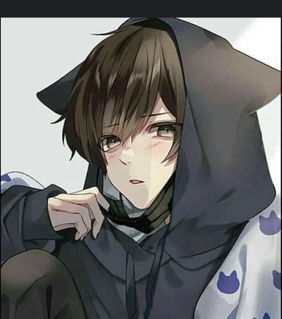 His big innocent Blue eyes sparkle in hope, Jay really wants to get out of this infernal shop. His body Is muscular but not too much, he has dark brown fluffy hair and cute cat ears and tail.